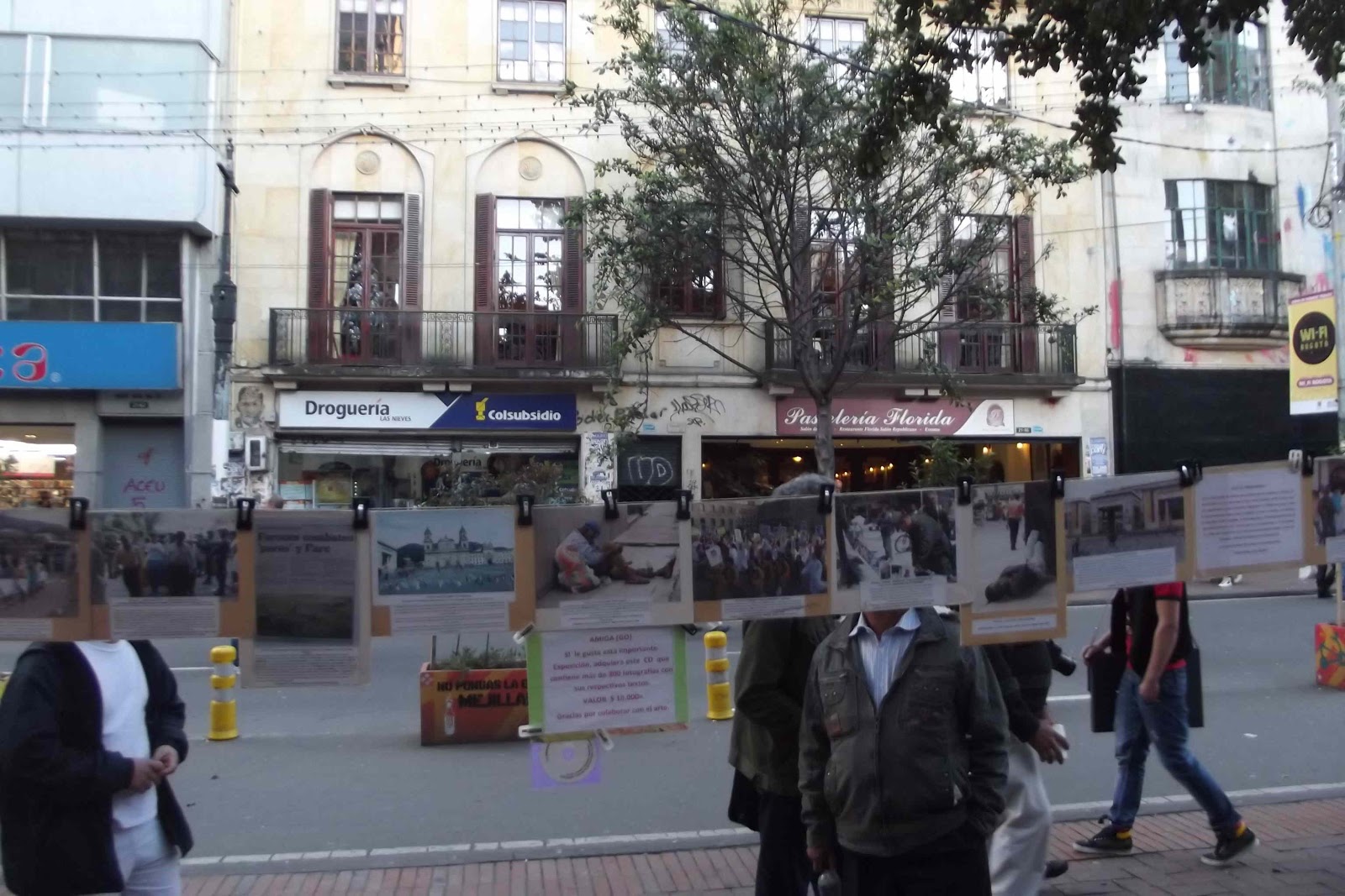 | Carlos, a bit ironically, hangs his photos on one of Bogotá's most commercial avenues. |