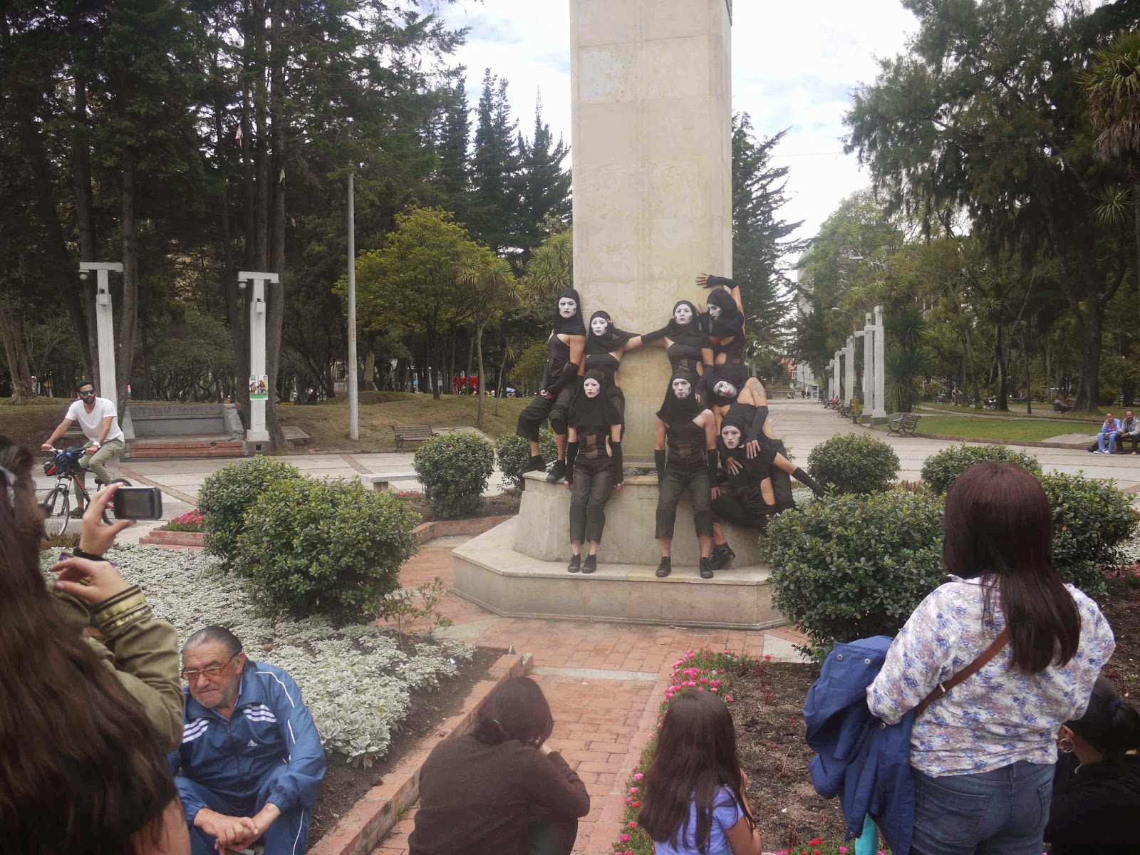 A theatre troupe - whose name I never learned - carried out this piece of performance art - whose name I never learned - today in the Parque Nacional. The sort of stark, haunting costumes and acting (completely silent) suggested to me that the performance was about violence and human rights violations - common themes in Colombian alternative art.
