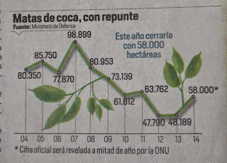 | A graphic from El Tiempo portrays the recent jump in coca leaf acreage in Colombia. |