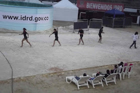As part of Bogotá's Summer Festival four stunt high divers did their thing in the bullfighting stadium today. Chilly evening weather and a slight drizzle took away some of the summer feel for the two men and two women divers, who hailed from Colombia, Mexico, Bulgaria and England.